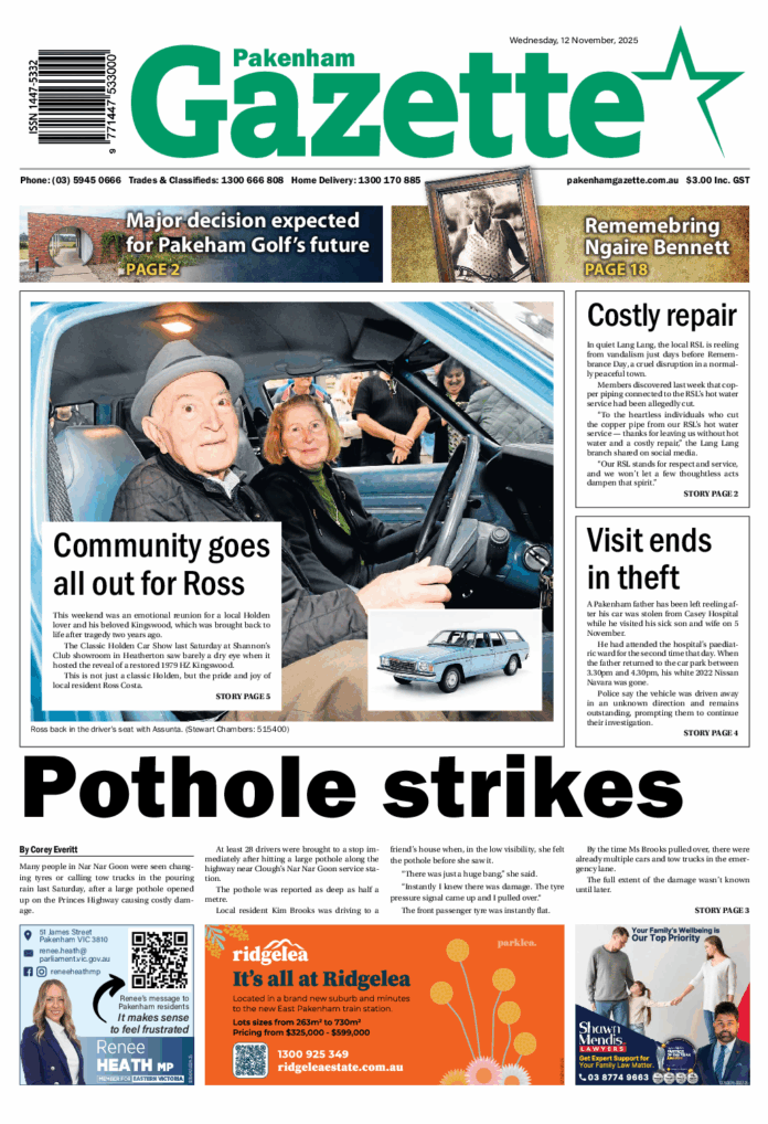 Pakenham Gazette – 12th November 2025 Subscribe or Login to see the rest of the content. Username Password * Remember Me Forgot Password News Local council mayoral election approaches 16/11/2025 Casey Mayor Stefan Koomen appears to be the only councillor publicly putting up their hand for next week’s mayoral election. The City of Casey will... Cannabis crop found inside Cranbourne factory 16/11/2025 Police at Dandenong Divisional Response Unit are investigating a cannabis crop which was located at a factory site in Cranbourne on 13 November. A significant... Bunjil Place’s biggest event yet 16/11/2025 Saturday nights in the summer are about to get even more exciting, with Bunjil Place set to host one of its biggest free outdoor...