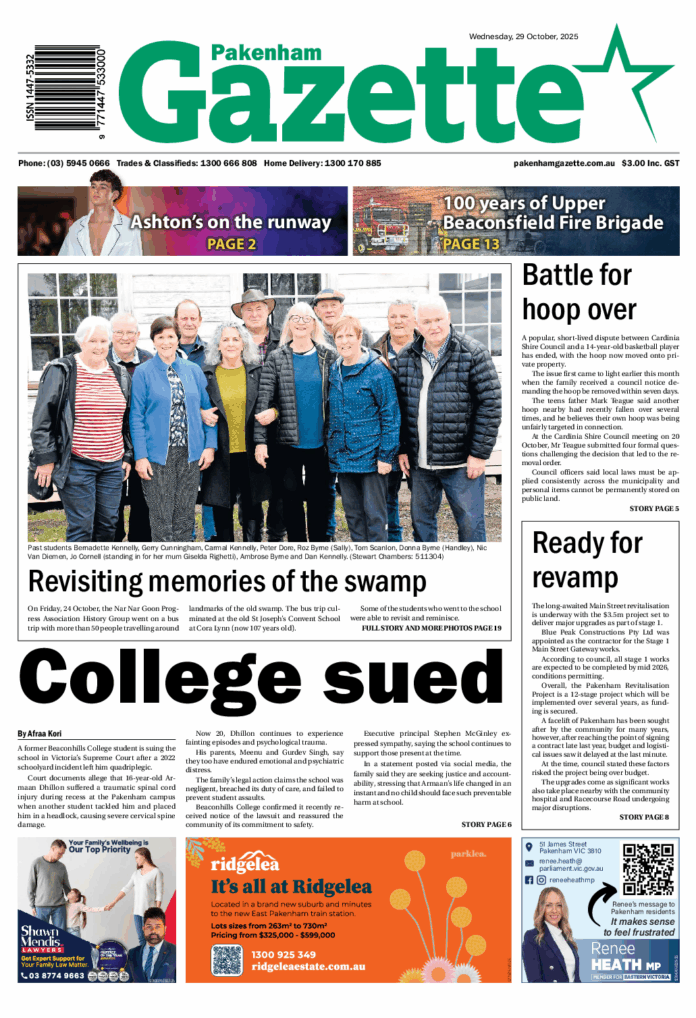 Pakenham Gazette – 29th October 2025 Subscribe or Login to see the rest of the content. Username Password * Remember Me Forgot Password News Heartbroken owner loses kitten despite heroic efforts to save him 09/11/2025 Benji the kitten, who only one week ago was fighting for his life at an emergency clinic has sadly passed away at his home... Residents stranded without buses for months 09/11/2025 Residents say they’ve been left stranded, with no public bus services operating in some parts of Pakenham for more than three months. On Cameron Way,... End of term for State monitors appointed to oversee Casey Council 09/11/2025 The City of Casey has bid farewell to the State Government Municipal Monitors, who were appointed a 12-month term to provide oversight on the...