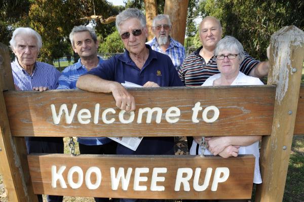 Geoff Stokes, Frank Crameri, Ray Brown, John Farmer, George and Kath Fittock of the Kooweerup Township Committee say the town has been unfairly portrayed.