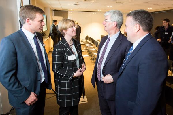 Committee for Gippsland CEO Mary Aldred talks to economist Saul Eslake with Committee for Gippsland's Paul Griffin and David Charge from SunCorp Bank.