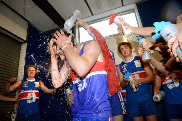 Matt Miller was drenched after his first game for the Bunyip seniors on Saturday. The Bulldogs could yet play a key part in September action in the EDFL and Miller wants to be a part of it. 141016 Picture: ROB CAREW