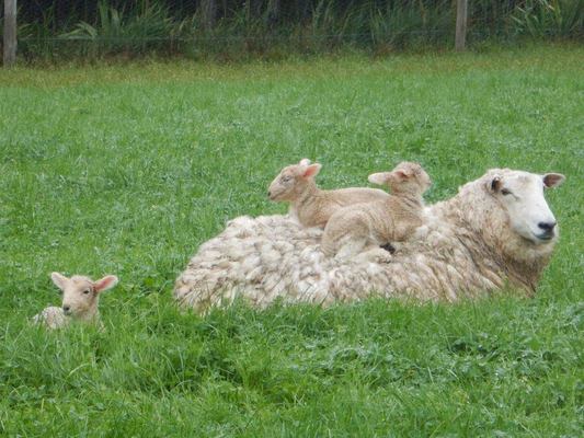Little lambs enjoy mum’s warmth