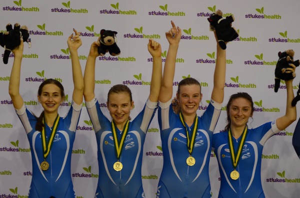 Alana Field, left, was thrilled to get back on the bike and be part of Victoria's JW17 team-pursuit national championship. Picture: ANNIE DUFFY PHOTOGRAPHY