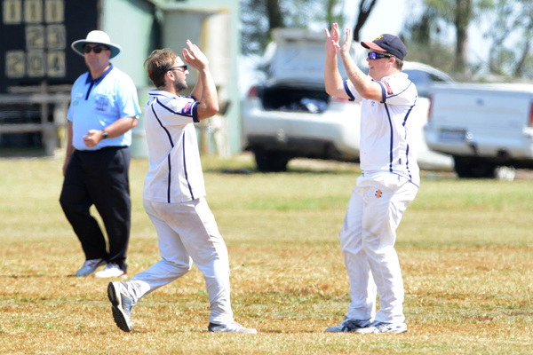 Pakenham skipper Jack Melbourne runs over to celebrate another wicket in last week's semi-final. 151084 Picture: ROB CAREW
