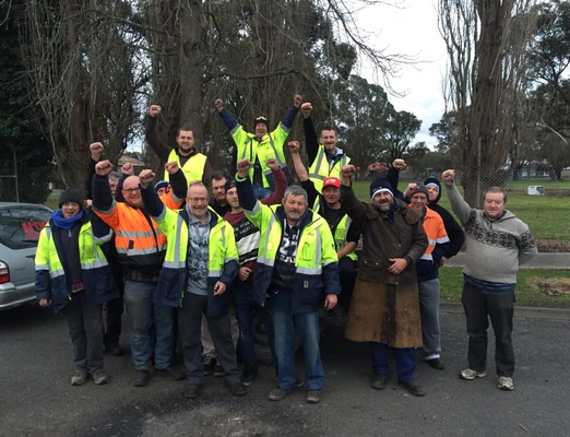 Longwarry workers rejoice after striking a deal with Parmalat following their 11 day lockout. Picture: National Union of Workers