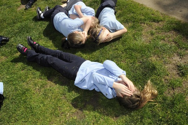 Molly demonstrates the Stop Drop and Roll safety procedure in the event of a fire. 158450 Picture: STEWART CHAMBERS