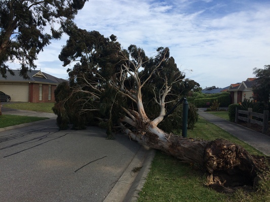 A street light was hit by a downed tree on Malouf Court, Pakenham.