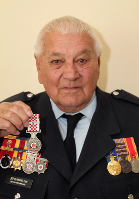 Ikon Joe Cumming OAM with his 70 year service medal awarded by the CFA. Picture: Joe Cumming