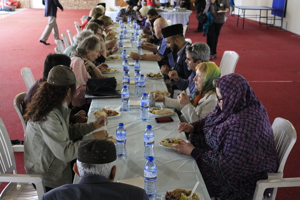 Guests having lunch with members of the community.