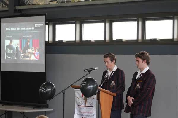 Next year's Berwick Grammar school captains Sean Dack and Noah Kent spoke at the White Ribbon Day assembly.