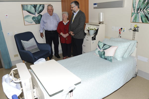 President KWR and Lang Lang Rotary Club Jan Kruizinga, with Marlene Weston from the Ladies Auxillary and CEO Frank Megens in the palliative care unit. 163211 Picture: STEWART CHAMBERS