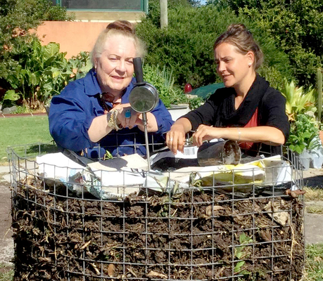 Mariam is learning from Dr Cole hands-on making of thermal aerobic compost for use in making compost tea.