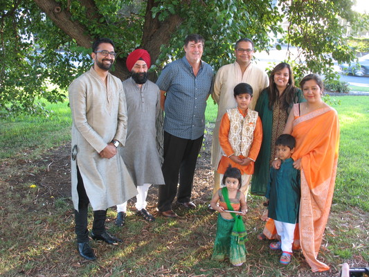 Mayur Meshram, Harpreet Kandra, Parklea Pakenham and District Agricultural and Horticultural Show president Geoff Young, Brijal Parikh, Aanchal Meshram, Aura, Mayush and Pviyansh.