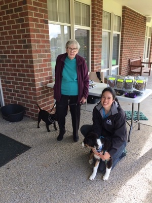 Evergreen resident Fran Miller and dog Mia with Amanda from Pawsitively Great Pets.