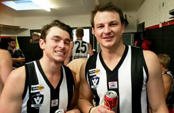 Stewart, left, and Nick Scanlon celebrate with a cold beer after their epic afternoon against Hampton Park.