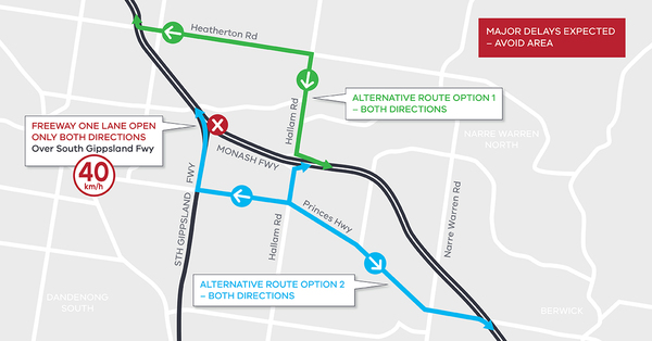 GazetteNews Weekend works on Monash 01/06/2017 FacebookTwitterEmail Suggested alternative routes around the intersection of the Monash and South Giippsland Freeways. By Victoria Stone-Meadows By Victoria Stone-Meadows Driver can expect another dose of Monash madness this coming weekend with the Western Distributor Authority projecting […] Subscribe or Login to see the rest of the content. Username Password * Remember Me Forgot Password