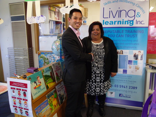 Kinders Together CEO Roger Chao and Living Learning Pakenham centre manager Miriam Cadwallader are delivering a literacy program aimed at young isolated mothers.