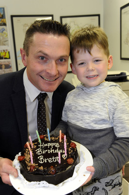 Cardinia Shire Mayor Brett Owen and son Will with his surprise cake. 169596_02 Picture: STEWART CHAMBERS