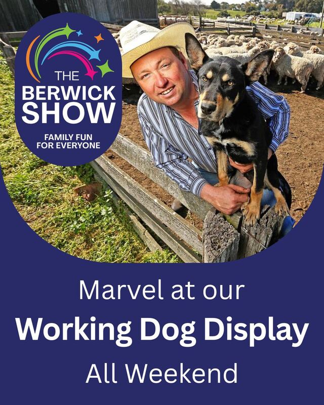 The Berwick Show proudly welcomes Jack Briscoe and his extraordinary team of working dogs! Watch in awe as Jack demonstrates their skill, agility, and teamwork in the arena. The Working Dog Display runs all weekend, giving plenty of chances to see these talented dogs in action.