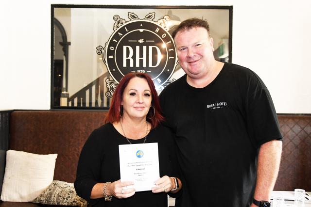 The Royal Hotel Drouin's Rachael and Danny Murnane with their award for Parma of the Year. Photo: STEWART CHAMBERS 336124_01
