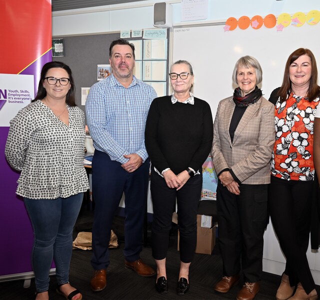 From left to right: transition coach Kirstie, SELLEN chief executive officer Andrew Simmons, Dr Penny Round, Young Pregnant & Parenting Network president Lyn Allison, and Young Parents Program manager Mary Tresize – Brown. Picture: Supplied