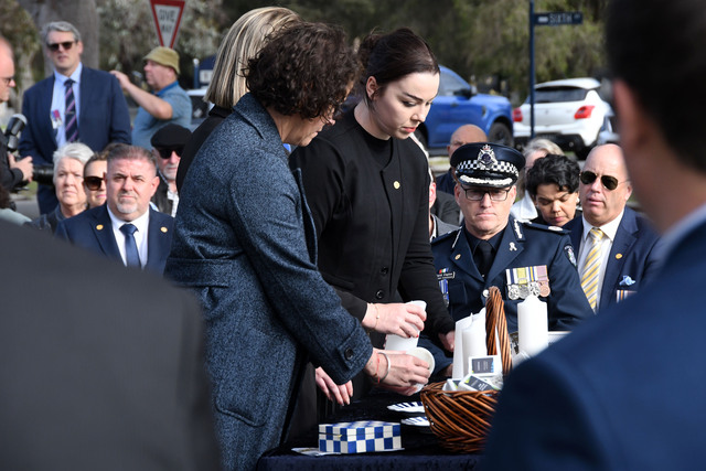 End of Day reflection and candle lighting was performed by Police Veterans Victoria's Rebecca Lynch, Carla Deale and Amy Merricks. (Stewart Chambers: 504780)