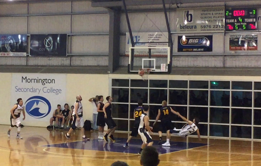 The Warriors prevailed in another heart-stopping finish at Mornington, thanks to this basket from Ben Gaze. Picture: RUSSELL BENNETT