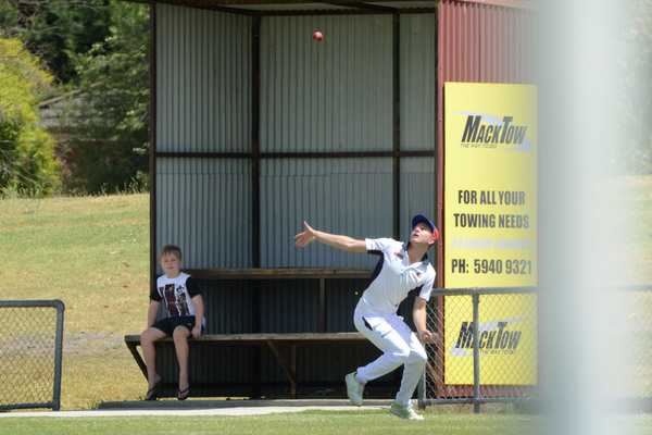 Kooweerup young gun Luke McMaster juggled this catch right up against the boundary rope to remove Lions star Dale Tormey on Saturday. 189831 Pictures: ROB CAREW
