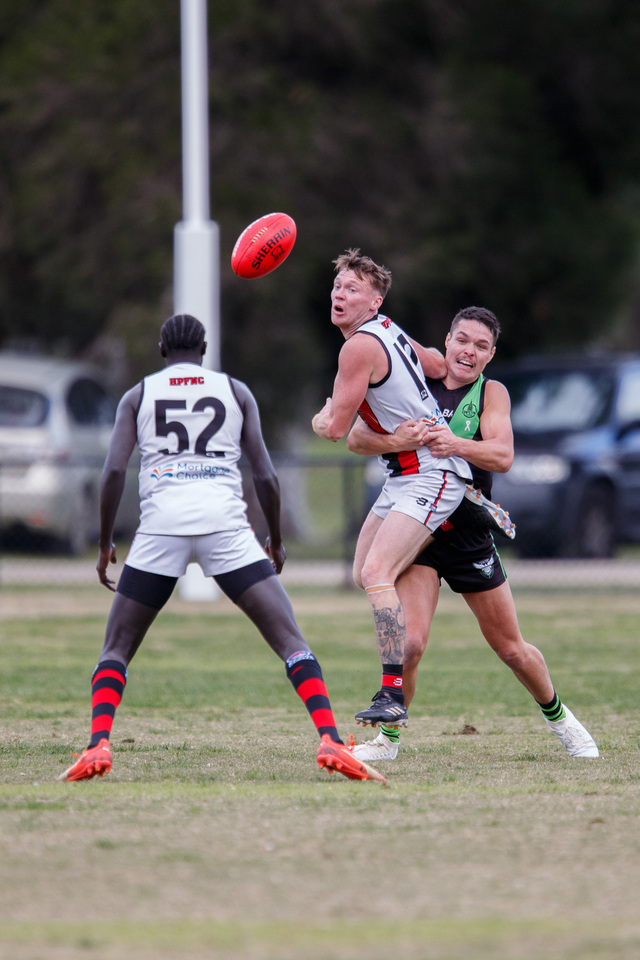 Redback Buom Koang ready to pounce on the ball spilling free from a Harley Primrose tackle. 414861 Pictures: GARY SISSONS.