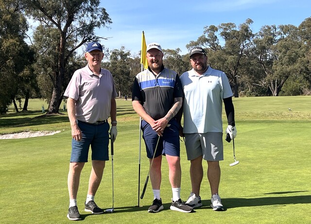 Newly-elected Club President Russell Swan with Acting General Manager Matt Thompson and new committee member Charlie Love. (Supplied: 508511)