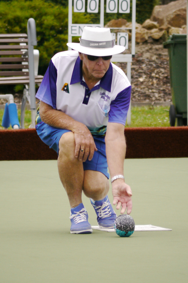 Ray Naylor bowling in a club game at Cardinia Waters last Sunday. (Supplied: 526164)